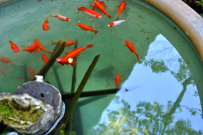 Fish ponds, giant fish bowls, fish everything. My first winter, I worried they’d all freeze. And while some people bring their fish inside for the winter, a surprising number are just fine in their outdoor bowls. This makes our 3-year-old very happy. We spend a lot of time looking at fish…