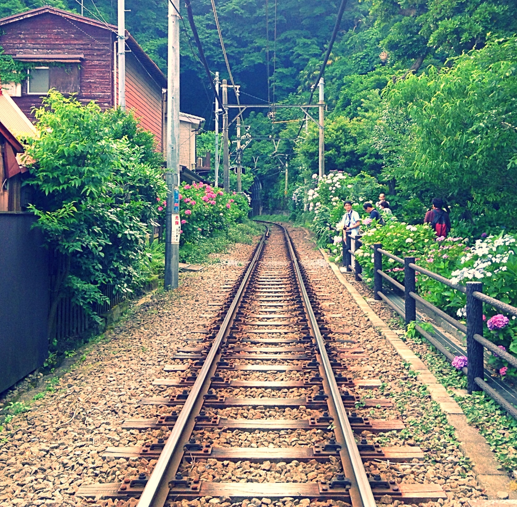 imageJust what are all these people waiting for, cameras in hand? Why, they’re waiting to get a shot of our most adorable little train with hydrangeas in the background.