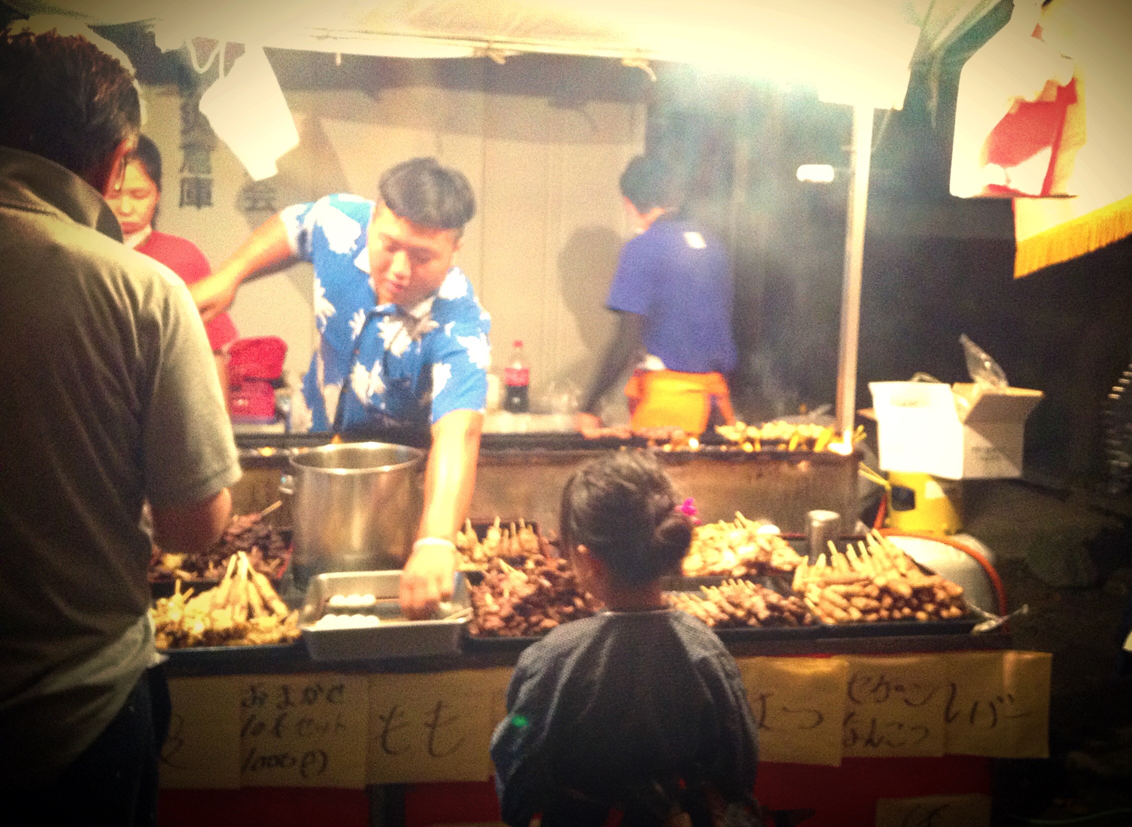 Photo of the Day: Yakitori Posted on September 21, 2015September 21, 2015 by helenkamakura Another favourite food booth at festivals—yakitori, which is chicken on a stick (and other meats, too). Yakitori is delicious, but you have to watch out for the liver, cartilage and chicken skin ones… Unless, of course, you like that kind of thing. Share this:Tweet Click to email a link to a friend (Opens in new window) Email Click to print (Opens in new window) Print Share on TumblrLike Loading... Related